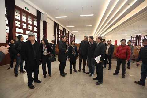 宗明来到相辉堂和艺术教育馆,详细询问了场馆建设的情况,对目前的建设进展表示肯定。
