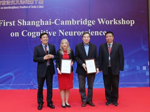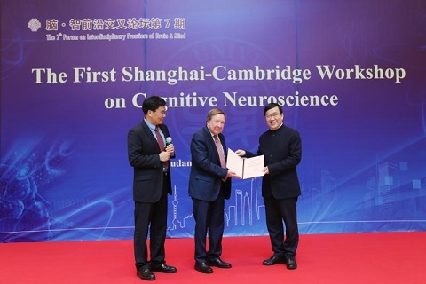3月26日,首届上海-剑桥认知神经科学论坛在复旦大学举行。英国神经科学学会前主席、剑桥大学心理学系教授Trevor W Robbins,国际神经药理学大会计划委员会联合主席、英国医学科学院院士Barbara J Sahakian,中国科学院院士、中科院神经科学研究所所长蒲慕明,复旦大学类脑智能科学与技术研究院院长冯建峰作为特邀嘉宾参加首届论坛并发表主题演讲。