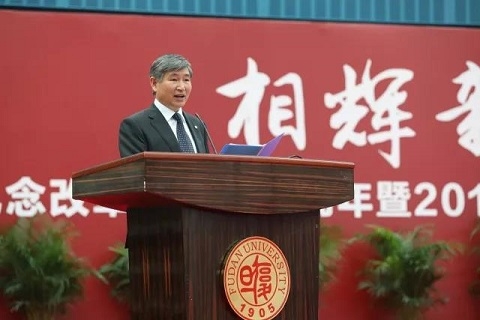 复旦大学原党委副书记、校友会副会长陈立民主持大会