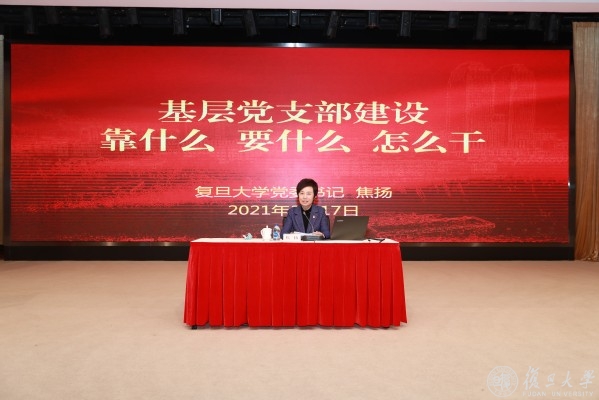 在复旦大学党史学习教育全面启动后,全校教职工党支部书记聆听了特别的一课。3月17日上午,“贯彻新发展理念,推动基层党建高质量发展”教职工党支部书记专题轮训正式开班。作为党史学习教育的重要内容,校党委书记、党校校长焦扬主讲开班第一课。校党委副书记、副校长周亚明主持开班式。