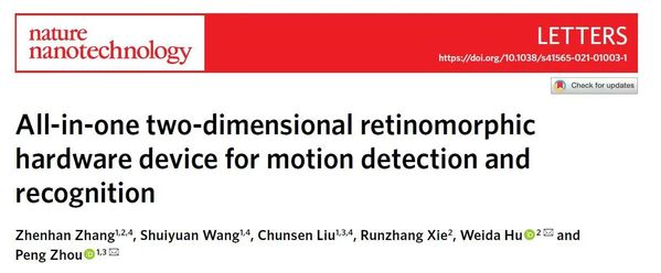 2021年,周鹏/王水源团队在国际上首次提出了单器件感存算功能的“全在一”集成,真实模仿了视网膜完整架构,成果发表于《自然-纳米科技》(Nature Nanotechnology),成为了本次工作开展的重要基础。