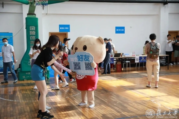 管理学院为新生准备了特色帆布袋、笔记本和管院吉祥物小熊,新生可以转动转盘,关注管院官方公众和B站账号。