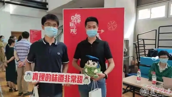 马克思主义学院量身定制了附马院LOGO的文件袋,附赠印有每位同学姓名的院徽一枚,还有学院吉祥物“真真”和“甜甜”现场助阵。