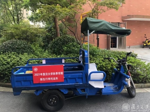 迎新期间,学校在上海各主要火车站提供接站服务,在校内设行李托运领取处并安排摆渡车帮助新生运送行李。
