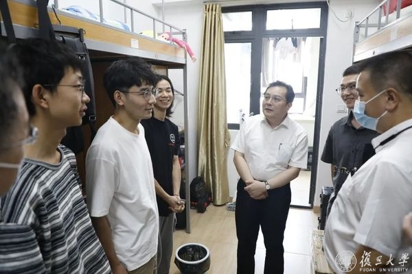 沈炜一行先后来到复旦大学上海医学院康泉图书馆、西苑一楼食堂、学生公寓楼东楼等地察看各区域快速测温设备运行和出入口管理情况,检查食堂、学生宿舍楼常态化疫情防控管理以及实时监控情况等。沈炜对复旦大学上海医学院疫情防控工作予以肯定,希望进一步加强校园防控和人员管理,推进新生疫苗接种工作,确保学校安全和师生身体健康。