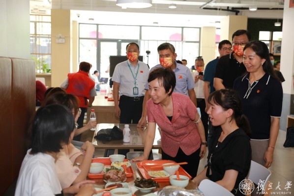 随后,焦扬询问了“星火”队的假期排班、值班时间。队长、党支部书记、中文系博士生许亚云介绍了情况。得知新学期“星火”队正在招募新的预备队员、培育“新火种”,焦扬表示:“要让党员志愿服务队‘星火’相传,培养更多‘心有所信’的复旦人。”