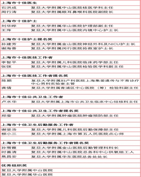 经过层层推荐、市民投票、专家评审,17位复旦医务工作者获得表彰。名单如下: