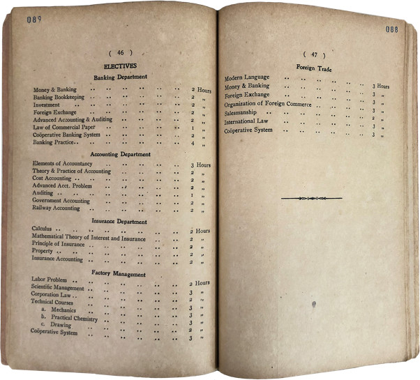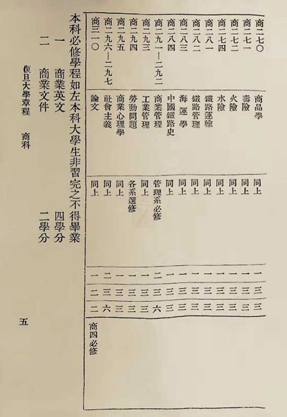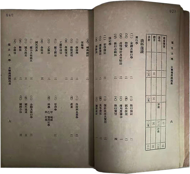 1927年,复旦大学再次修改章程引入学分制,将“保险学原理”设为4学分商学院本科生必修课程,并增设“火险”“水险”“寿险”三门选修课,自此始,复旦保险教育从理论逐步走向实务。
