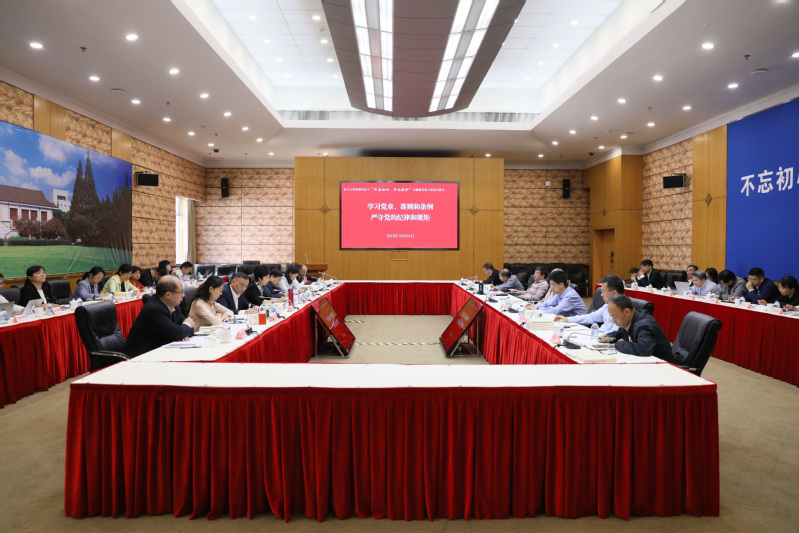 10月24日上午,复旦大学党委举行“不忘初心、牢记使命”主题教育第八次集中学习研讨。校领导班子聚焦党的政治纪律和政治规矩,重点学习党章、《关于新形势下党内政治生活的若干准则》、《中国共产党纪律处分条例》,掌握党内法规的基本要求,围绕严格遵守党的纪律和规矩,始终保持党的先进性和纯洁性进行交流讨论,并观看了警示教育片。校党委书记焦扬主持会议并讲话。校党委副书记、校长许宁生等学校党政领导班子成员参加学习。部分机关部处负责同志列席。