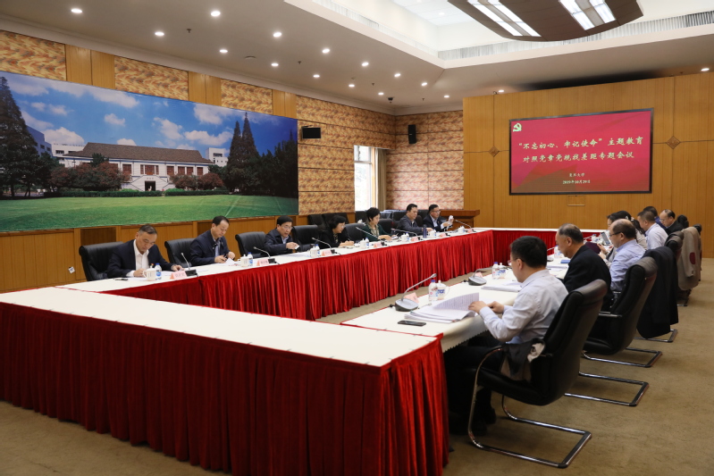 10月29日,复旦大学党委举行“不忘初心、牢记使命”主题教育对照党章党规找差距专题会议。校党委书记焦扬主持会议。中央第三指导组组长诸葛彩华、成员李涛,中央主题教育领导小组办公室联络二组成员蒋宏潮到会指导。校党委副书记、校长许宁生等学校党政领导班子成员出席会议。