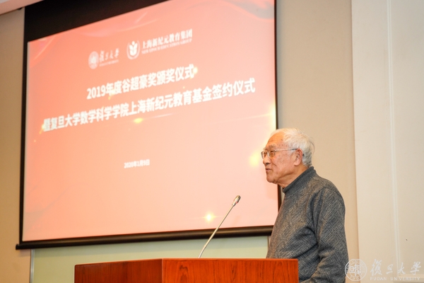 为纪念谷超豪先生对数学事业的杰出贡献,并激励复旦大学中、青年数学工作者努力做出具有创造性的研究工作,2013年复旦大学设立“谷超豪奖”。洪家兴院士宣读2019年度“谷超豪奖”获奖名单并介绍了两位获奖者的学术成就。数学科学学院教授陈猛、雷震获得本届谷超豪奖。