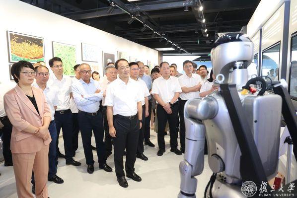 交流会前,上虞区领导、相关单位负责人和企业家代表参观了复旦大学智能材料与未来能源创新学院、未来信息创新学院、科技成果馆和校史馆。