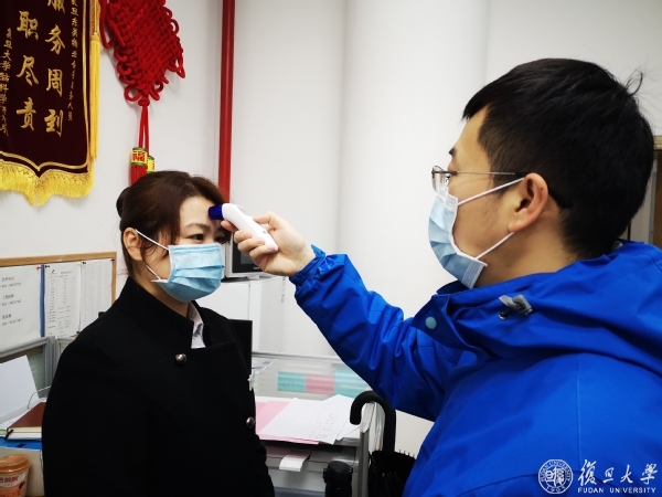 是日大年初二,往年此时游人如织的复旦校园,此刻安静得只听得鸟鸣声。而在各校区各校门,带着口罩的保安正为进入校园的师生和工作人员测量体温;在公共区域,物业人员使用消毒液进行消毒;在校医院,医生们值班守候;在各院系和机关部处,大家都已忙碌起来,联络着本单位的师生,制定着各条线工作预案……紧张而有序的画面背后,是复旦人共同的心声:防控疫情,人人有责;和疫情赛跑,刻不容缓!
