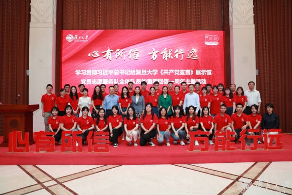 6月27日,复旦大学在邯郸校区光华楼举行“心有所信 方能行远”学习宣传贯彻习近平总书记给复旦大学《共产党宣言》展示馆党员志愿服务队全体队员重要回信精神一周年主题活动,总结回顾一年来全校师生深入学习宣传贯彻总书记重要回信精神的成果成效,交流分享各条线学习贯彻总书记重要回信精神的收获体会。