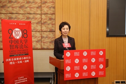 李卫红在致辞中指出,高校智库创办以来,在目标定位、资源整合、机制创新、评价激励等方面,全国高校有很多大建言胆的尝试、鲜活的做法,形成了很多好的研究成果,为中央和地方决策贡献了智慧和力量。五年来,大学智库论坛的成功举办,汇聚了全国高校智库的力量,推动了智库建设的创新发展,为党和国家提供了很多切实有效的政策建议,形成了一定的影响力和品牌效应。她强调,站在即将全面建成小康社会这样一个重大历史节点上,我国高校智库的发展必将迎来新的机遇和挑战。未来高校智库建设要坚持党管智库,引导高校智库围绕党和国家急需资政建言;坚持智库协同联动,形成政府“信得过”“靠得住”“用得上”的成果;坚持开放包容,“走出去”“引进来”并举,打造国际一流高校智库。高校智库要肩负起国家建设的光荣使命,在党的十九大和习近平总书记关于中国特色新型智库建设系列重要论述的指引下,加快构建中国特色哲学社会科学,努力实现“2020全面小康”的目标和“两个一百年”的宏图。