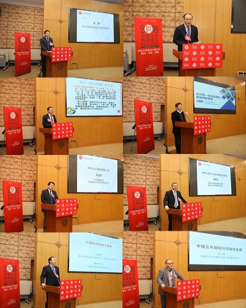 中国大学智库论坛秘书长、原教育部副部长、教育部关心下一代工作委员会主任李卫红,上海市人民政府副市长翁铁慧,复旦大学党委书记焦扬出席论坛。中共上海市教育卫生工作委员会副书记李昕、复旦大学副校长陈志敏分别主持两场全体大会。“一带一路”智库合作联盟秘书长、中联部当代世界研究中心主任金鑫,上海市发展和改革委员会副主任、党组副书记阮青,外交学院院长、中国国际关系学会常务副会长秦亚青,国家高端智库理事会理事、复旦大学中国研究院院长张维为,复旦大学泛海国际金融学院学术访问教授魏尚进,同济大学特聘教授、可持续发展与管理研究所所长诸大建先后作主旨演讲。
