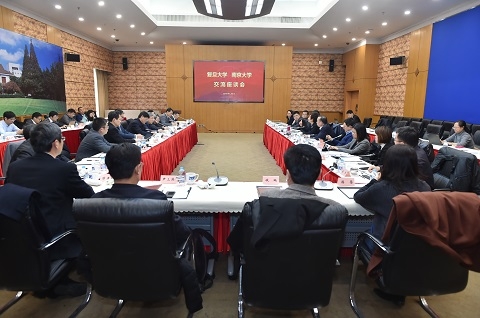 会上,双方讨论热烈,取长补短,相互激励,表示将牢记习近平总书记在北大师生座谈会上对复旦、南大等高校的嘱托,深入落实立德树人根本任务,加快建设中国特色世界一流大学,为实现教育强国梦作出应有的贡献。