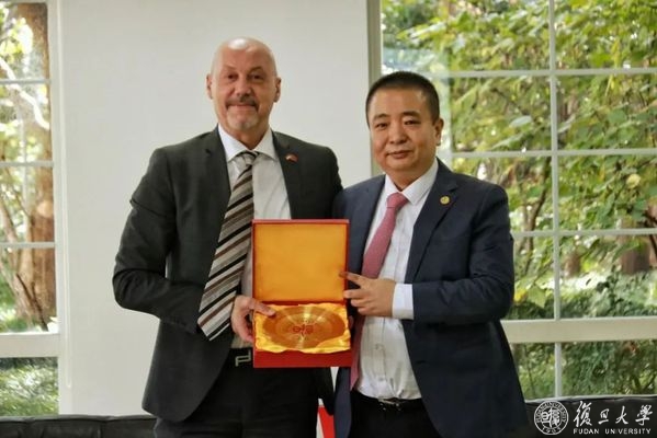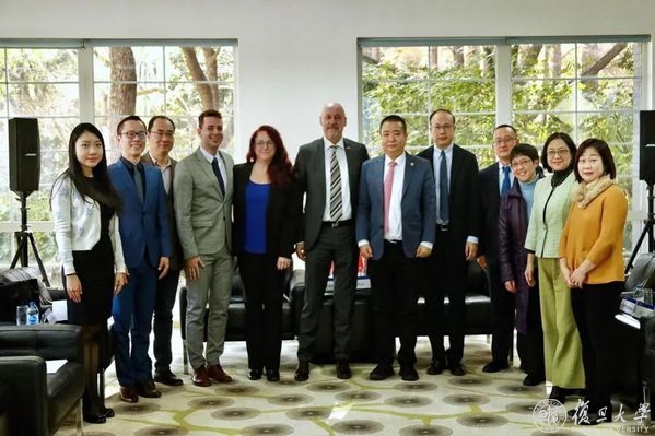 会谈结束后,蓝海睦一行参观了复旦大学奥地利中心。奥地利中心新任奥方主任Carlos Peter Reinelt介绍了中心工作。
