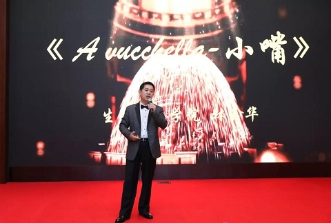光华楼13楼多功能厅内,透过半圆形的玻璃穹隆,和煦的阳光映照在一串串大红灯笼上,洋溢着喜庆的氛围。“玉犬献瑞不忘初心牢记使命立德树人同奋进,金猪如意凝心聚力继往开来改革创新绘宏图”,舞台两侧的对联格外醒目。