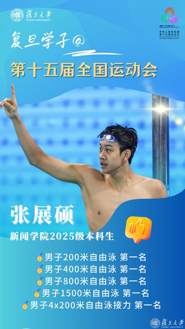 现在,让我们一同回顾复旦健儿们在十五运会上的拼搏征程与优异成绩,点亮这份属于复旦人的“高光时刻”!