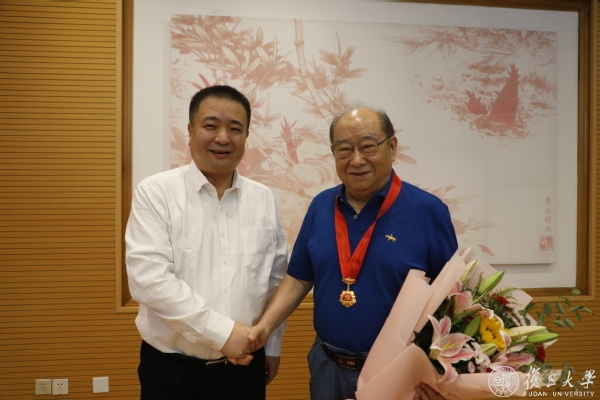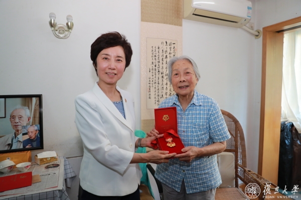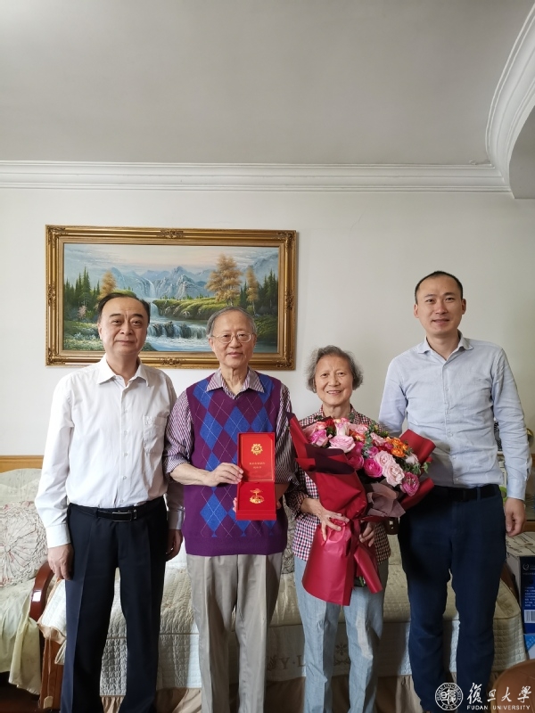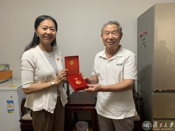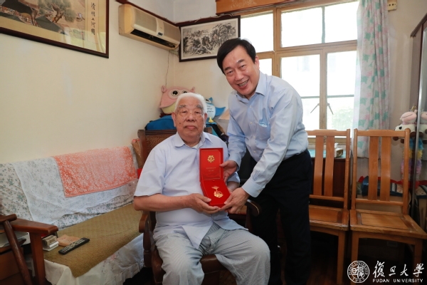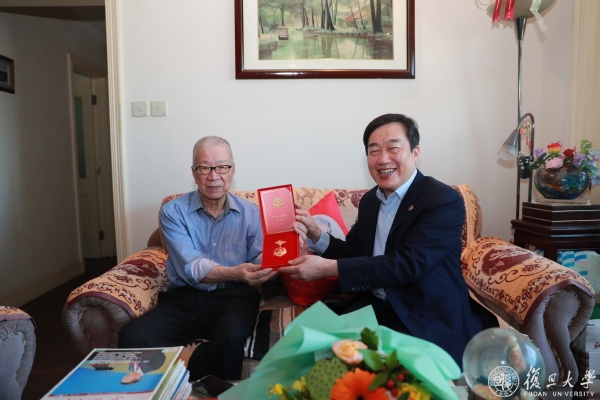 许宁生看望了复旦大学原校长、中国科学院院士、核物理学家杨福家,为他颁发了纪念章,称赞他为教育国际化所做出的杰出贡献。1955年入党的杨福家,终身致力于物理学研究,在1993年至1998年间担任复旦大学校长,他以宽阔的国际视野引领着全校师生,培养了一批批优秀的青年人才。