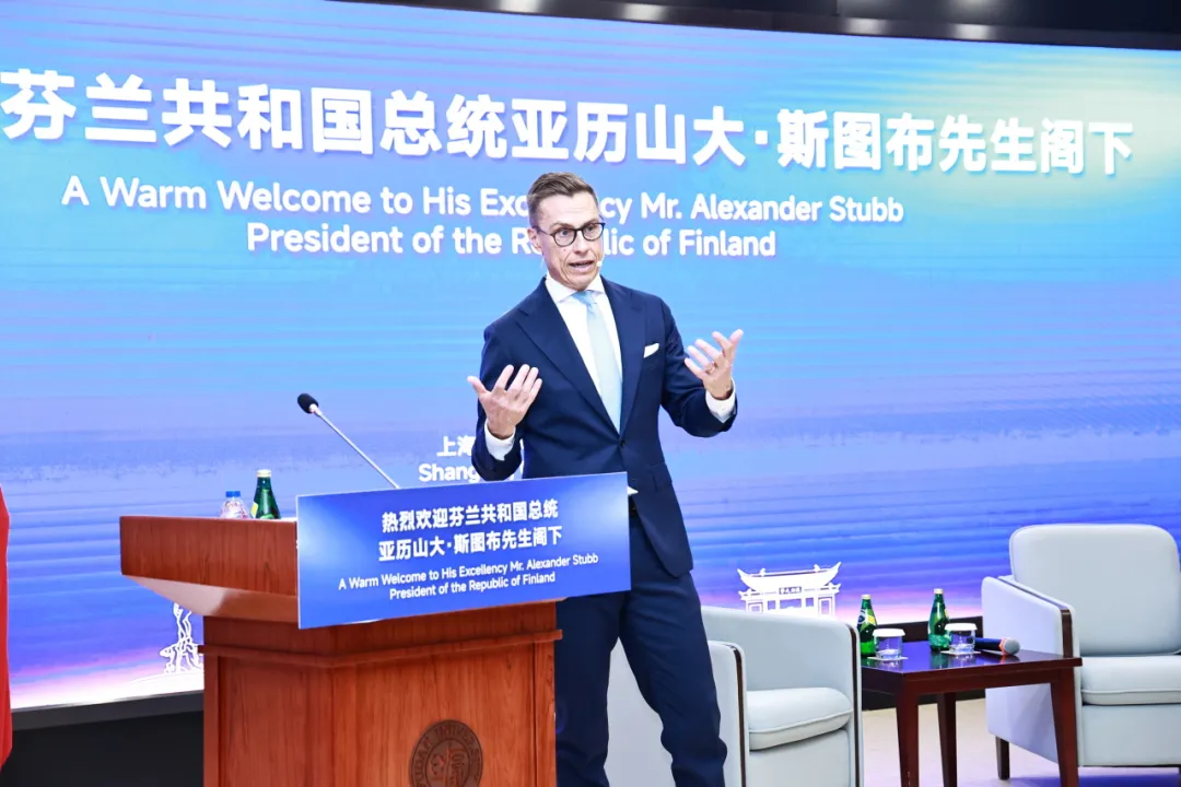 演讲结束后,斯图布与复旦相关国际问题专家进行深入交流,并参观复旦大学北欧中心。作为全球第一个北欧中心,复旦大学北欧中心成立于1995年,是复旦和丹麦、芬兰、挪威、瑞典和冰岛20余所大学合办的学术交流平台,也是中国和北欧师生交流合作的纽带。北欧中心与芬兰大学的合作涵盖教育和科研,包括福利系统、老龄化、健康科学、环境科学等多个领域,中心的暑期课程“中国商务与创新”深受芬兰学生喜爱。