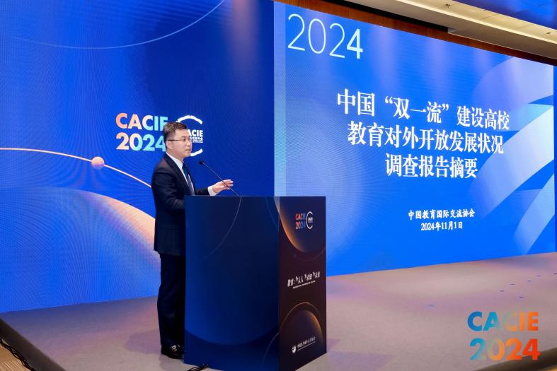 论坛期间,中国教育国际交流协会《教育国际交流》编辑部主任唐振福发布《2024年“双一流”建设高校教育对外开放发展状况调查报告》摘要,从对外开放战略、发展保障机制、教师、学生、专业课程、涉外办学、学术交流、人文交流与特色发展等八个方面,对“双一流”建设高校教育对外开放的最新发展情况进行了介绍和解读。
