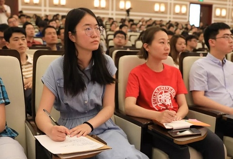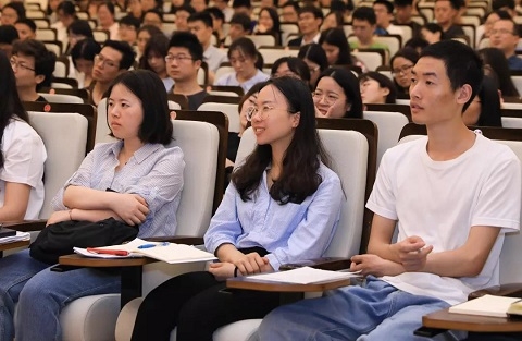 两个半小时的课堂,400余名来到现场的毕业生凝神聆听。教室里时而传出会心的笑声,而十多次热烈的掌声,既有向先辈和身边榜样的致敬,也有对焦扬所讲感悟的共鸣,更有为奋斗未来的鼓劲。