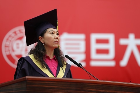 复旦大学附属华山医院教授毛颖作为导师代表发言。“向过往致敬,为未来壮行!”毛颖以登山的故事、道路的故事、盲人撑杆跳的故事,勉励毕业生做新时代最优秀的人应该心态拔尖、终身学习、永远奋斗。“无论今后走向何方,要始终铭记,是这个蓬勃发展的国家和机遇无限的时代在托举着我们;而‘博学笃志,明其道不计其功;敬业乐群,正其谊不谋其利’的复旦会永远给我们无尽的精神动力,复旦会为我们留下青春记忆,无论未来身在何处,都可以彼此识别。”