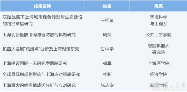 日前,第十五届上海市决策咨询研究成果奖名单公布,全市共评选出80项获奖成果(20项一等奖、40项二等奖、20项三等奖),复旦大学获一等奖2项、二等奖6项、三等奖3项,11项获奖位列全市第一。这11项获奖成果,涵盖多个学科领域,兼具科技前沿与社会应用,体现跨学科融合与政策导向,彰显了复旦大学在基础研究、应用研究与政策研究方面的综合性优势。