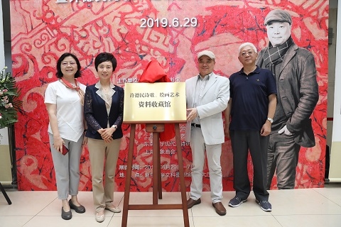 6月29日,“抽天开象”——许德民诗歌、绘画艺术资料收藏馆揭牌仪式暨许德民诗歌、绘画艺术作品展开幕式在复旦大学图书馆举行。复旦大学党委书记焦扬,副书记刘承功,中华志愿者协会副会长、全国妇女联合会宣传部原部长张小媛,以及近四十位诗人、学者、艺术家出席揭牌仪式。
