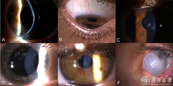 圆锥角膜(keratoconus)是一种以角膜扩张为特征,角膜局部呈锥形凸出,导致不规则散光和视力损害的角膜疾病(图4),通常起病于青春期,发病率约1/2000(不同种族间存在差异)且逐年增高,影响患者生活质量、生产能力和职业选择,并有致盲风险。10%~20%的严重圆锥患者需要角膜移植,而我国角膜供体来源紧张,患者和社会承受巨大压力。