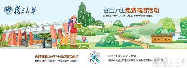 复旦师生游台州政策发布,广大复旦师生在2024年11月25日至2025年2月28日期间(元旦、春节法定节假日除外)可免费畅游台州21个景区。