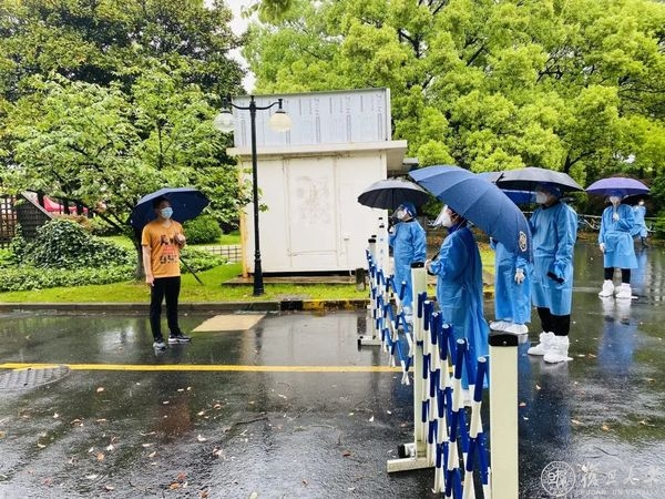 今晨有雨,南区零星可见同学们走出楼栋、雨中散步的身影,他们各自保持间距、撑起雨伞,漫步在花园草坪中。焦扬在现场详细询问相关部门负责人,了解区域网格化管理与园区各项生活保障措施。她指出,下一阶段学校不仅要从严从实从紧抓好网格化管理,还应在试运行的基础上广泛收集师生反馈,优化实施方案,加强信息公开,让学生有预期,了解学校管理手势,能主动调整和安排,做好相应配合。