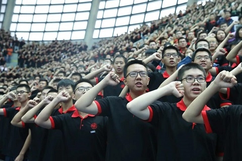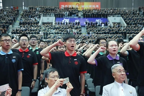 “今天我成为一名光荣的复旦大学学生,从今后,明道重志、修德立诚,隆师取友、专一有恒,博学明辨、谨言慎思,笃志求是、躬行践履,心系国家、兼济天下。”复旦大学第47届学生会主席陆祯严带领全体新生面向校旗庄严宣誓