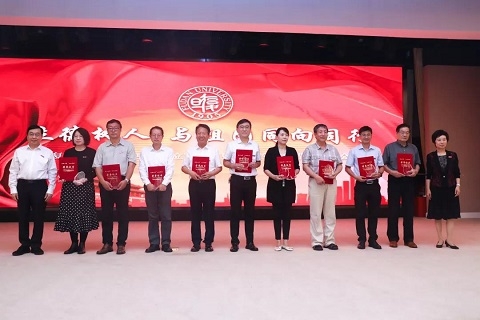 今年,254名教师加入复旦大家庭,在立德树人的道路上薪火相传。闻玉梅院士为新入职教师代表、马克思主义学院青年教师唐荣堂佩戴校徽,唐荣堂向闻玉梅院士献花并发言。