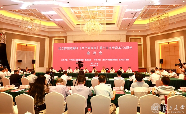 为深入学习贯彻习近平总书记关于陈望道和《共产党宣言》系列重要讲话精神,纪念陈望道翻译《共产党宣言》首个中文全译本100周年,8月21日,纪念陈望道翻译《共产党宣言》首个中文全译本100周年座谈会在浙江义乌举行。本次座谈会由中共浙江省委宣传部、复旦大学主办,复旦大学望道研究院、中共义乌市委承办。