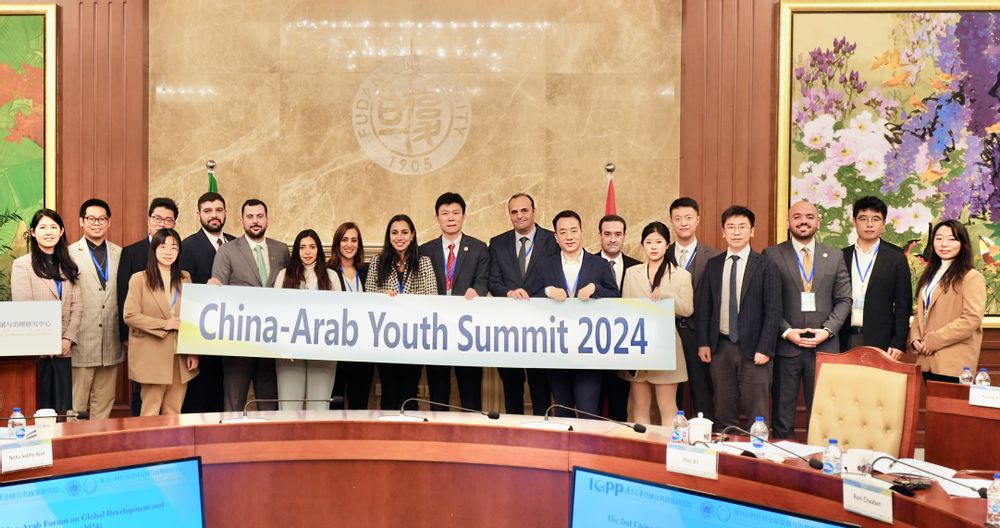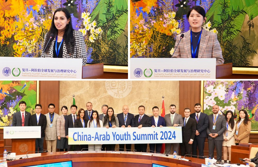 在“青年的使命与责任”专题讨论上,来自阿盟并在复旦大学全球院攻读硕士学位的Hayam Al-Sallal分享了她的职业发展经历及在中阿青年合作中的体会,强调了青年在应对全球性挑战中的关键作用。随后,复旦大学全球院助理教授徐菁媛代表中国青年发言,指出青年在全球发展中承担着推动进步和国际合作的历史重任,鼓励青年成为文化交流的桥梁,携手构建繁荣、公平的未来世界。全球公共政策研究院院长敬乂嘉主持该部分,介绍了首届“中阿青年峰会”的设计思路和筹备情况,并邀请参加峰会的所有青年上台留影。