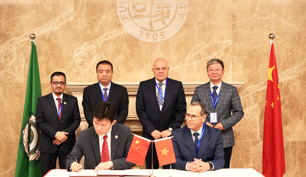 在论坛上,“中阿高校10+10合作计划”的公共政策领域的中方牵头单位复旦大学全球院与阿方牵头单位摩洛哥穆罕默德六世理工大学治理、经济学与社会科学学院签署合作协议,以推动在学生交流、联合课程和科研等方面的合作。敬乂嘉与治理、经济学与社会科学学院教授Aziz Ajbilou互换协议。金力、Amr Salama、严纯华和Farraj Alajmi见证签署仪式。阿拉伯大学协会高级顾问Walid Salameh主持签约仪式。