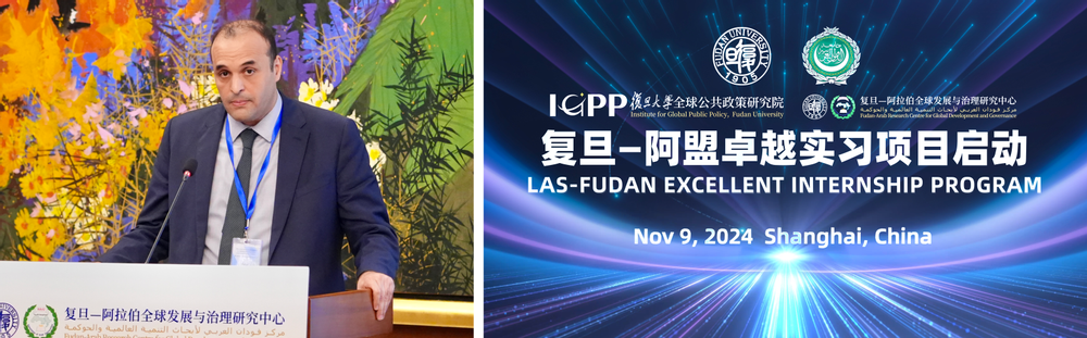 Faisal Swedan就复旦的阿盟中青年干部学术训练营的开展情况进行了介绍,高度赞扬该训练营在推进阿盟官员了解中国国家治理和全球治理、提高自身能力上起到的积极作用。他感谢项目组织方的精心安排,对上海自信、开放、卓越和友善的城市特色表达了赞誉,并宣布复旦—阿盟卓越实习项目将于2025年1月在埃及首都开罗启动,为中国学生提供深入了解阿盟历史、职能和组织的宝贵机会。复旦大学全球院敬乂嘉介绍了该实习项目的基本思路与安排,并邀请所有参会人员共同见证项目启动的倒计时仪式。