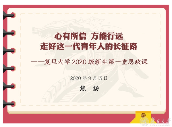 课堂进入尾声,焦扬寄语同学们:“今天,历史的接力棒交到了各位手上。希望大家在未来的复旦生活中,心中有信仰、脚下有方向,学思践悟、奋发有为,走好人生的长征路,走好新时代的长征路!”