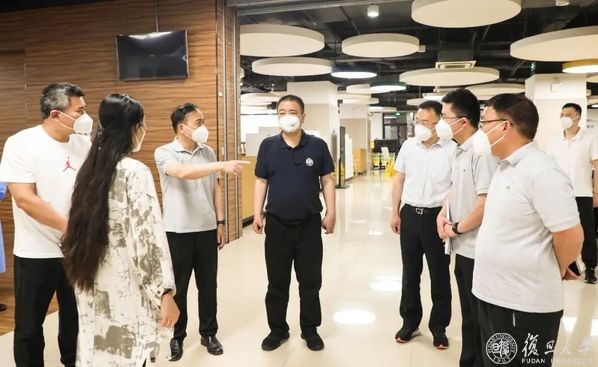 6月8日上午,复旦大学校长、上海医学院院长金力,复旦大学党委副书记、上海医学院党委书记袁正宏,上海医学院党委副书记、副院长徐军一行先后走访科研平台、实验动物科学部、门岗、图书馆、餐厅、超市、学生公寓楼、菜鸟驿站、核酸检测点等,详细了解各院系平台复工复研情况,调研指导进入新一轮准封闭管理后的校园疫情防控工作。医学院各职能部门负责人和有关院系驻校负责人陪同调研。