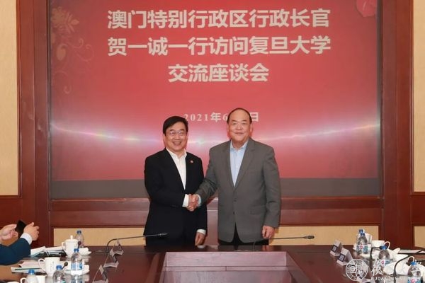 6月5日下午,澳门特别行政区行政长官贺一诚一行到访复旦大学。双方就澳门特区与复旦大学进一步深化友好合作、共同服务国家区域重大发展战略等进行交流座谈。复旦大学校长、中科院院士许宁生与贺一诚先后致辞,复旦大学副校长徐雷主持座谈会。