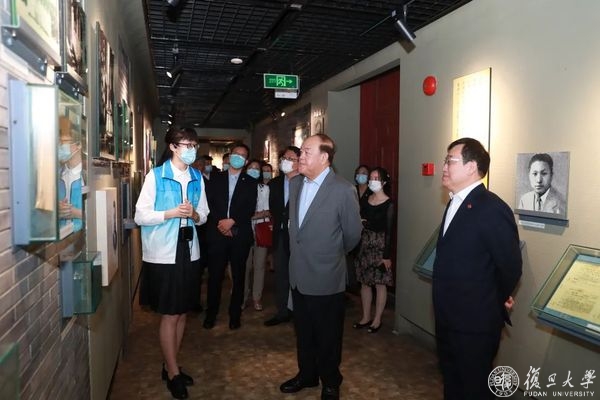 会谈前,贺一诚一行参观了复旦大学校史馆,聆听学生志愿者讲解复旦大学校史,并与在复旦就读的港澳学生代表亲切交流。