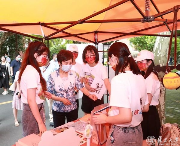 书院手册、笔记本、文件夹、书签、玩偶……报到咨询台上摆放着任重书院学生自主设计的主题文创内容,以书院标志色和老校长为元素制作产品,汇集成美观实用的“书院大礼包”,寄寓着对新同学“‘橙’风破浪”的美好祝愿。《雏凤文存:复旦大学任重书院学术论文集》由陈尚君院长作序,彰显了书院的学术传统。焦扬说,学校特别安排陈尚君这样的名师当书院院长,学生能近距离感受大家风范,这实在是一种幸运,希望同学们好好珍惜。“你们的设计非常精美,非常用心!”焦扬赞不绝口,还提起一位北京的女生考了684分的好成绩,坚定填报复旦历史系,因为她从中学便崇拜谭其骧先生。“这是热爱的力量,也是大师的力量!”