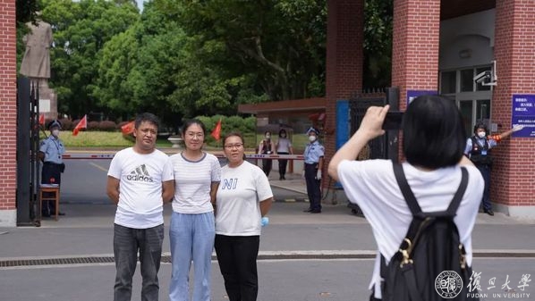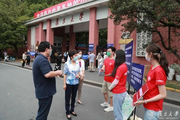 一早,来自五湖四海的复旦新生、家长们已经在邯郸校区正门口合影留念。新生有序排队扫码、查验防疫信息。入校流程方便、快捷。