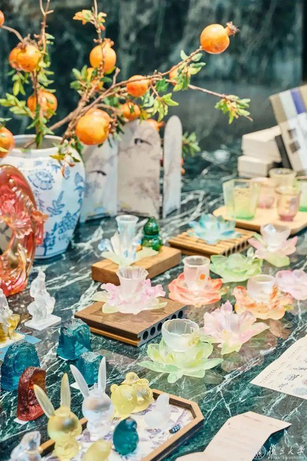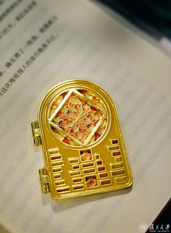 2000+种独特好物中,书院特别推出“承启”系列定制文创“金色穹顶”翻盖冰箱贴、透光书签……每一件都融入了复旦管院的特有元素。