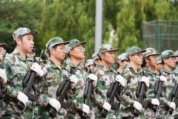 炎炎夏日,太阳烘烤着大地,脚底传来的热浪,额头上豆大的汗珠顷刻落下,但双手依旧贴紧裤子,抬头挺胸站直。军训里有“计密智安,毫不手软,金瓯无缺,你好世界”的嘹亮口号;军训有同学们自信骄傲的“十六连”。