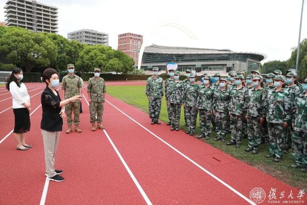 军训汇演结束后,焦扬再次对全体承训教官们表示衷心感谢和诚挚慰问。她表示,在教官们的精心带教下,军训会操圆满结束,复旦大学完成党和国家“军训育人”的任务,向党和人民交上了一张漂亮的答卷。