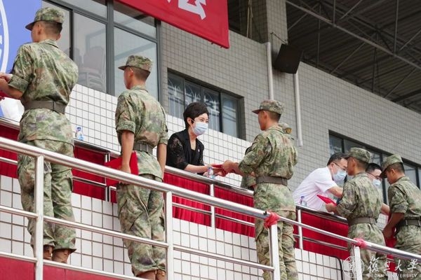 在南区体育场现场,辅导员和学生代表纷纷表达军训感想和期待。“提前给你们点赞。”焦扬表示,在同学们身上看到复旦大学学生应有的模样,看到了复旦人的昂扬斗志,看到了团结、服务、牺牲的复旦精神在新时代发扬光大、在复旦学子身上延续。她对同学们表示赞赏,感到欣慰。“同学们要按照承训教官要求,一鼓作气,圆满完成军训会操任务,向党和人民、向克服困难为大家作军事训练的部队教官们交上一份满意的答卷。”